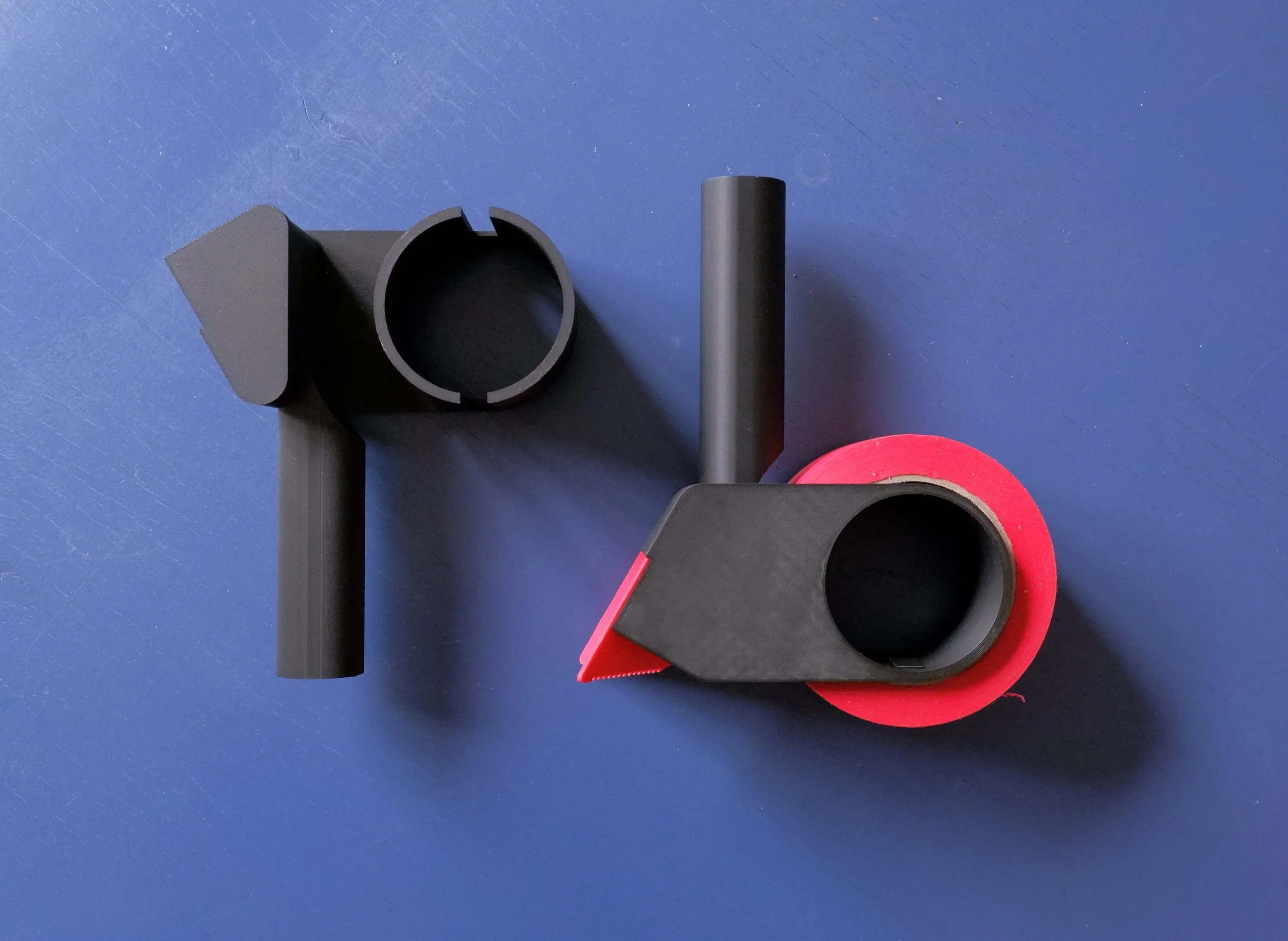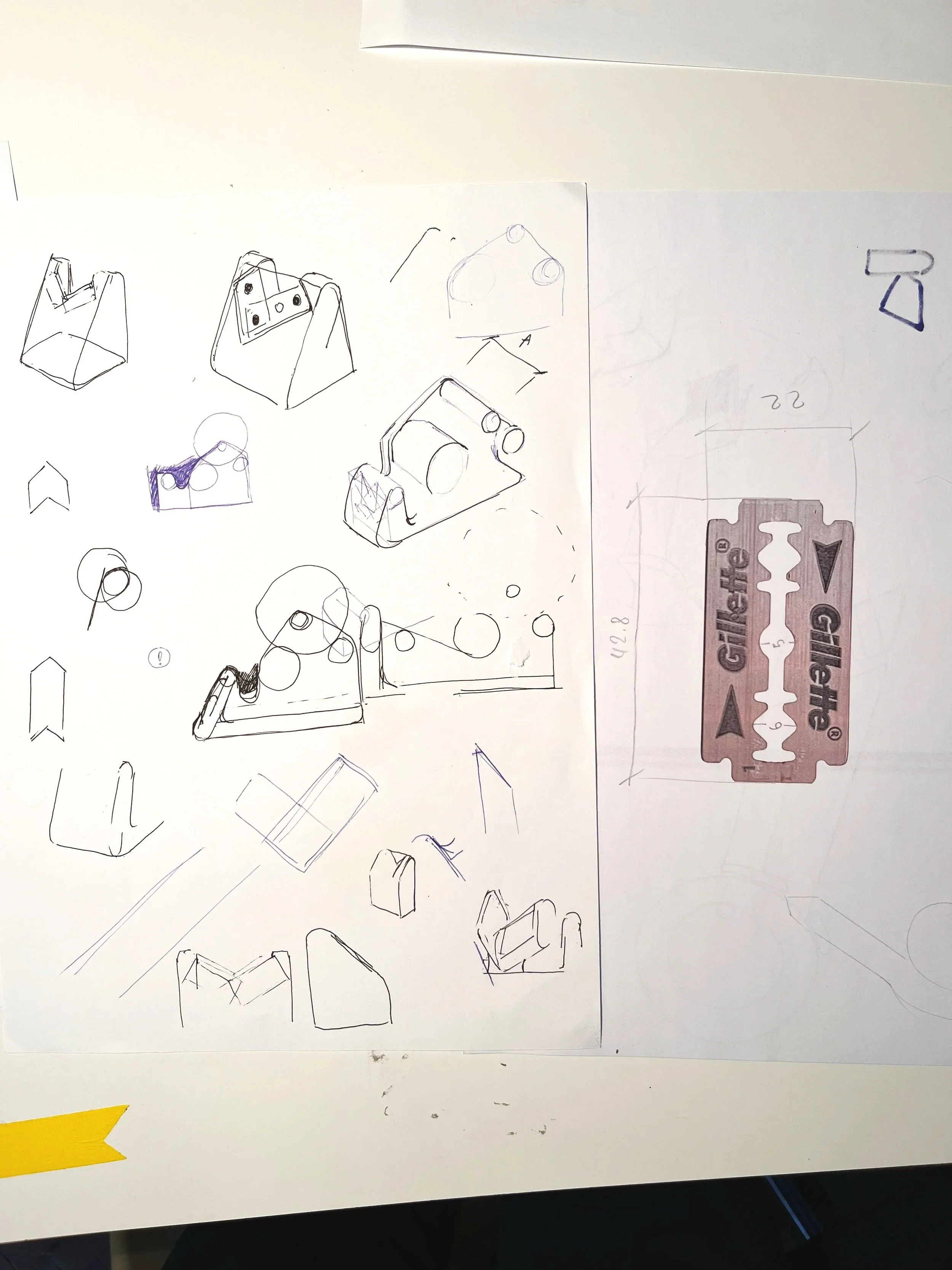 Quali aspetti del progetto non erano verificabili dal modello 3d?Puoi raccontarci anche attraverso le foto dei prototipi quali sono state le criticità che ti hanno portato a scartare/migliorare quel determinato campione?Inizialmente avevo l’idea di fare un tagliafrecce che funzionasse con tutti i tipi di scotch, qualsiasi fosse la dimensione o il materiale. Era un oggetto molto diverso, fatto di due elementi separati, da fissare su un piano: il primo consisteva in un supporto per i diversi formati di scotch; con una forma che ricorda una casetta, l’altro era l’elemento lama, che sfruttava delle lamette per rasoio di sicurezza.
